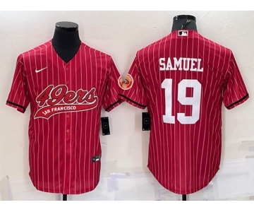 Men's San Francisco 49ers #19 Deebo Samuel Red With Patch Cool Base Stitched Baseball Jersey