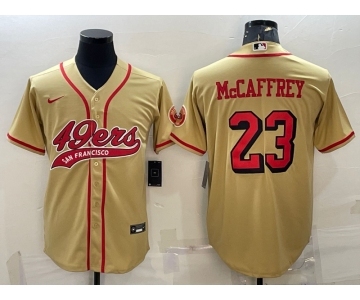 Men's San Francisco 49ers #23 Christian McCaffrey Gold Color Rush With Patch Cool Base Stitched Baseball Jersey