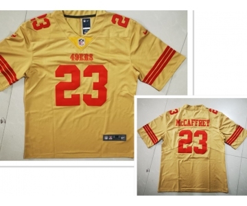 Men's San Francisco 49ers #23 Christian McCaffrey Gold NEW 2022 Inverted Legend Stitched NFL Nike Limited Jersey