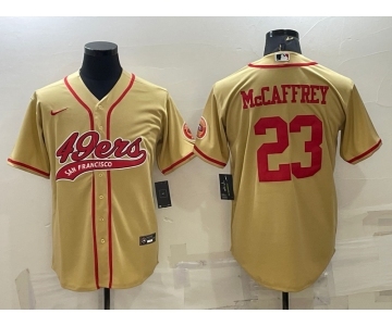 Men's San Francisco 49ers #23 Christian McCaffrey Gold With Patch Cool Base Stitched Baseball Jersey