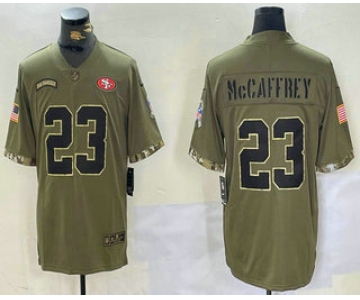 Men's San Francisco 49ers #23 Christian McCaffrey Olive 2022 Salute To Service Limited Stitched Jersey