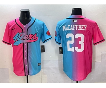 Men's San Francisco 49ers #23 Christian McCaffrey Pink Blue Limited Stitched Baseball Jersey