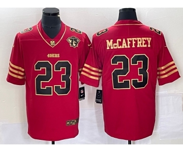 Men's San Francisco 49ers #23 Christian McCaffrey Red 75th Patch Golden Edition Stitched Nike Limited Jersey