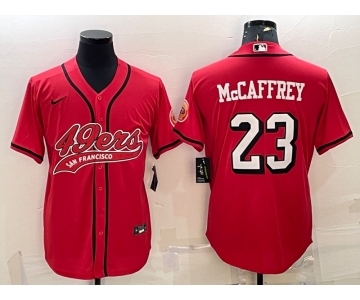 Men's San Francisco 49ers #23 Christian McCaffrey Red Color Rush With Patch Cool Base Stitched Baseball Jersey