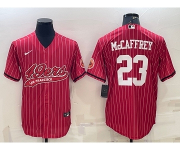 Men's San Francisco 49ers #23 Christian McCaffrey Red Pinstripe With Patch Cool Base Stitched Baseball Jersey