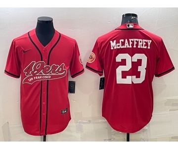 Men's San Francisco 49ers #23 Christian McCaffrey Red With Patch Cool Base Stitched Baseball Jersey
