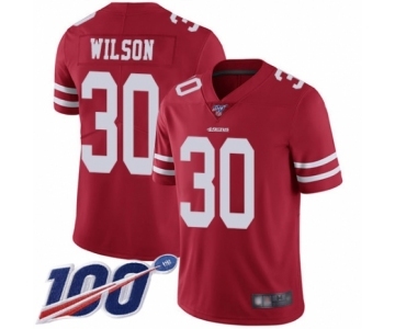 Men's San Francisco 49ers #30 Jeff Wilson Red Team Color Vapor Untouchable Limited Player 100th Season Football Jersey