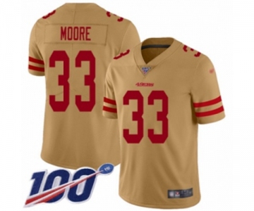 Your Position: Home>NIKE NFL Jerseys>Nike San Francisco 49ers>Limited Jerseys>Men's San Francisco 49ers #33 Tarvarius Moore Limited Gold Inverted Legend 100th Season Football Jersey