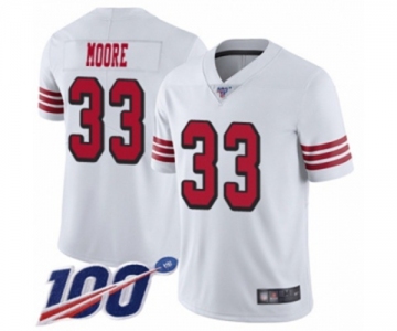 Your Position: Home>NIKE NFL Jerseys>Nike San Francisco 49ers>Limited Jerseys>Men's San Francisco 49ers #33 Tarvarius Moore Limited White Rush Vapor Untouchable 100th Season Football Jersey