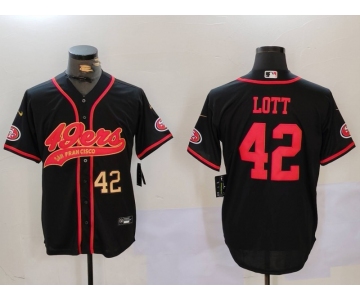 Men's San Francisco 49ers #42 Ronnie Lott Black With Patch Cool Base Stitched Baseball Jerseys