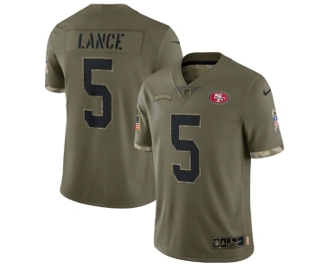 Men's San Francisco 49ers #5 Trey Lance 2022 Olive Salute To Service Limited Stitched Jersey