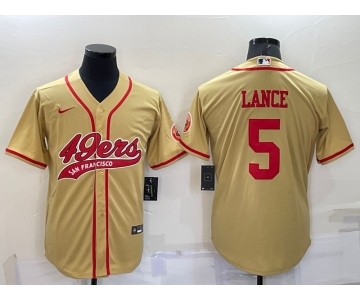 Men's San Francisco 49ers #5 Trey Lance Gold Stitched Cool Base Nike Baseball Jersey