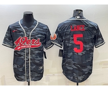 Men's San Francisco 49ers #5 Trey Lance Grey Camo With Patch Cool Base Stitched Baseball Jersey