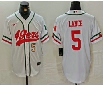 Men's San Francisco 49ers #5 Trey Lance Number White Mexico Cool Base Stitched Baseball Jersey