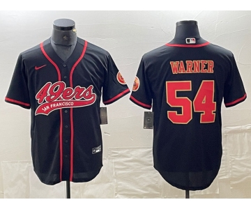 Men's San Francisco 49ers #54 Fred Warner Black Red With Patch Cool Base Stitched Baseball Jersey