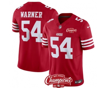 Men's San Francisco 49ers #54 Fred Warner Red 2023 F.U.S.E. NFC West Champions Patch Football Stitched Jersey