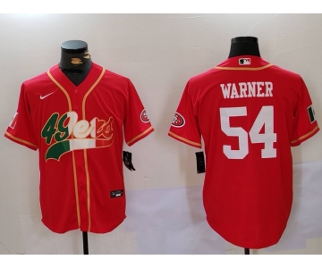 Men's San Francisco 49ers #54 Fred Warner Red With Patch Cool Base Stitched Baseball Jersey