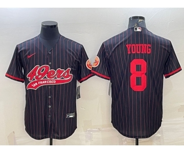 Men's San Francisco 49ers #8 Steve Young Black Pinstripe With Patch Cool Base Stitched Baseball Jersey