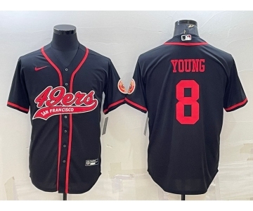 Men's San Francisco 49ers #8 Steve Young Black With Patch Cool Base Stitched Baseball Jersey
