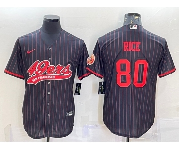 Men's San Francisco 49ers #80 Jerry Rice Black Pinstripe With Patch Cool Base Stitched Baseball Jersey