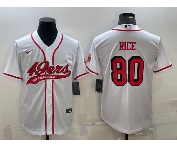 Men's San Francisco 49ers #80 Jerry Rice New White With Patch Cool Base Stitched Baseball Jersey