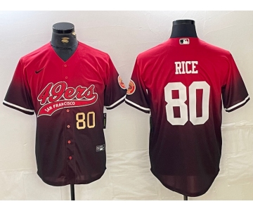 Men's San Francisco 49ers #80 Jerry Rice Red Black With Patch Cool Base Stitched Baseball Jerseys