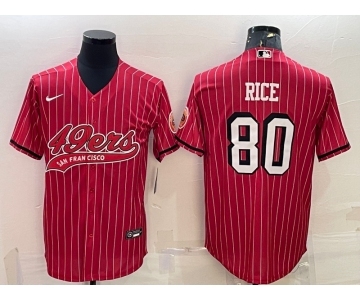 Men's San Francisco 49ers #80 Jerry Rice Red Pinstripe Color Rush With Patch Cool Base Stitched Baseball Jersey