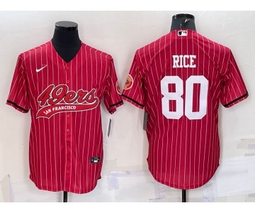 Men's San Francisco 49ers #80 Jerry Rice Red Pinstripe With Patch Cool Base Stitched Baseball Jersey