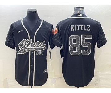 Men's San Francisco 49ers #85 George Kittle Black Reflective With Patch Cool Base Stitched Baseball Jersey