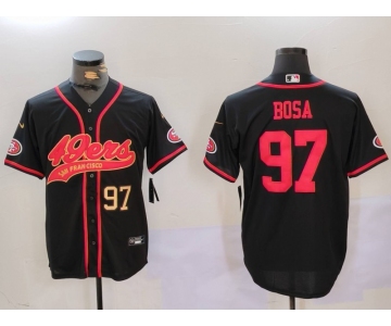 Men's San Francisco 49ers #97 Nick Bosa Black With Patch Cool Base Stitched Baseball Jersey