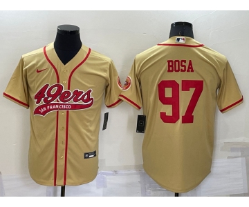 Men's San Francisco 49ers #97 Nick Bosa Gold Stitched Cool Base Nike Baseball Jersey