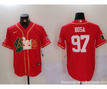 Men's San Francisco 49ers #97 Nick Bosa Red With Patch Cool Base Stitched Baseball Jersey