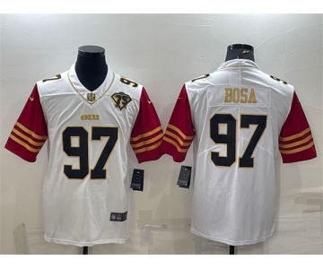 Men's San Francisco 49ers #97 Nick Bosa White Gold Edition With 75TH Patch Limited Stitched Football Jersey