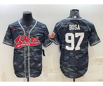 Men's San Francisco 49ers #97 Nike Bosa White Name Grey Camo With Patch Cool Base Stitched Baseball Jersey