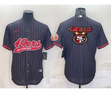 Men's San Francisco 49ers Black Pinstripe Team Big Logo With Patch Cool Base Stitched Baseball Jersey