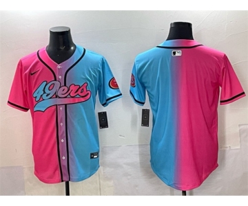Men's San Francisco 49ers Blank Pink Blue Limited Stitched Baseball Jersey
