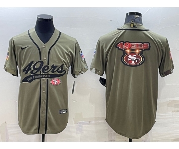 Men's San Francisco 49ers Olive Salute to Service Team Big Logo Cool Base Stitched Baseball Jersey