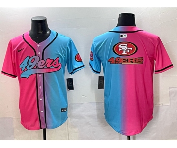 Men's San Francisco 49ers Team Big Logo Pink Blue Limited Stitched Baseball Jersey