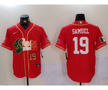 Men's San Francisco 49ers#19 Deebo Samuel Red With Patch Cool Base Stitched Baseball Jersey