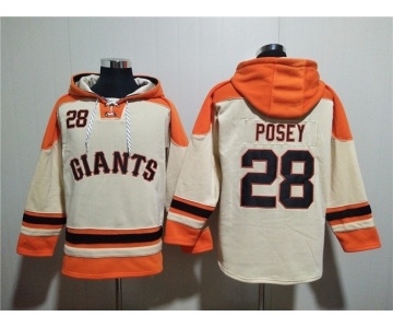 Men's San Francisco Giants #28 Buster Posey Cream Ageless Must-Have Lace-Up Pullover Hoodie