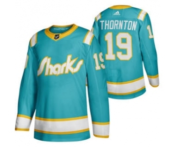 Men's San Jose Sharks #19 Joe Thornton 2020 Throwback Authentic Player Hockey Jersey Teal
