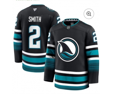 Men's San Jose Sharks #2 Smith Black 2024-25 Alternate Stitched Hockey Jersey