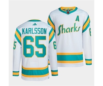 Men's San Jose Sharks #65 Erik Karlsson White 2022 Reverse Retro Stitched Jersey