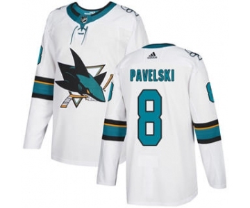 Men's San Jose Sharks #8 Joe Pavelski White Road Stitched Hockey Jersey