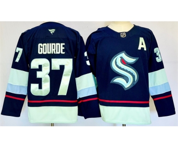 Men's Seattle Kraken #37 Yanni Gourde Navy 2024-25 Home With A Patch Stitched Hockey Jersey