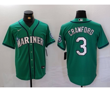 Men's Seattle Mariners #3 JP Crawford Teal Green Stitched Cool Base Nike Jersey