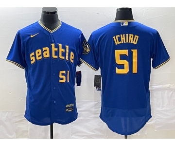 Men's Seattle Mariners #51 Ichiro Suzuki Number Blue 2023 City Connect Flex Base Stitched Jersey 1