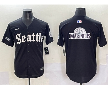 Men's Seattle Mariners Team Big Logo Black 'Deep Sea Gothic Edition' Vapor Premier Limited Stitched Baseball Jersey