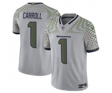 Men's Seattle Seahawks #1 Pete Carroll Gray 2025 F.U.S.E. “Rivalries” Vapor Untouchable Limited Football Stitched Jersey