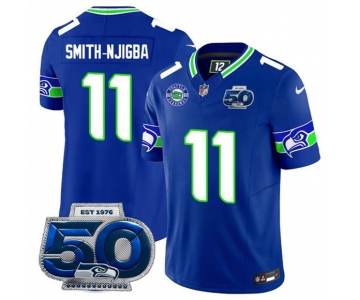 Men's Seattle Seahawks #11 Jaxon Smith-Njigba Royal 2025 F.U.S.E 50th Season Patch Throwback Vapor Limited Football Stitched Jersey